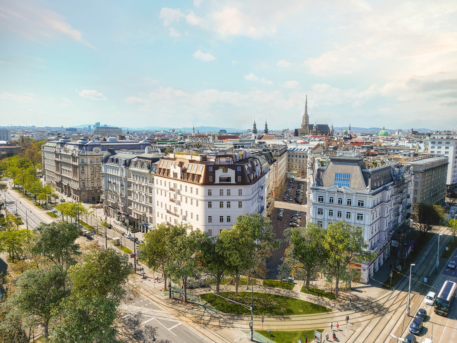 „Sixth Sense Residences“ ist prominent am Stubenring 2 gelegen, unmittelbar vis à vis der historischen Sternenwarte Urania.