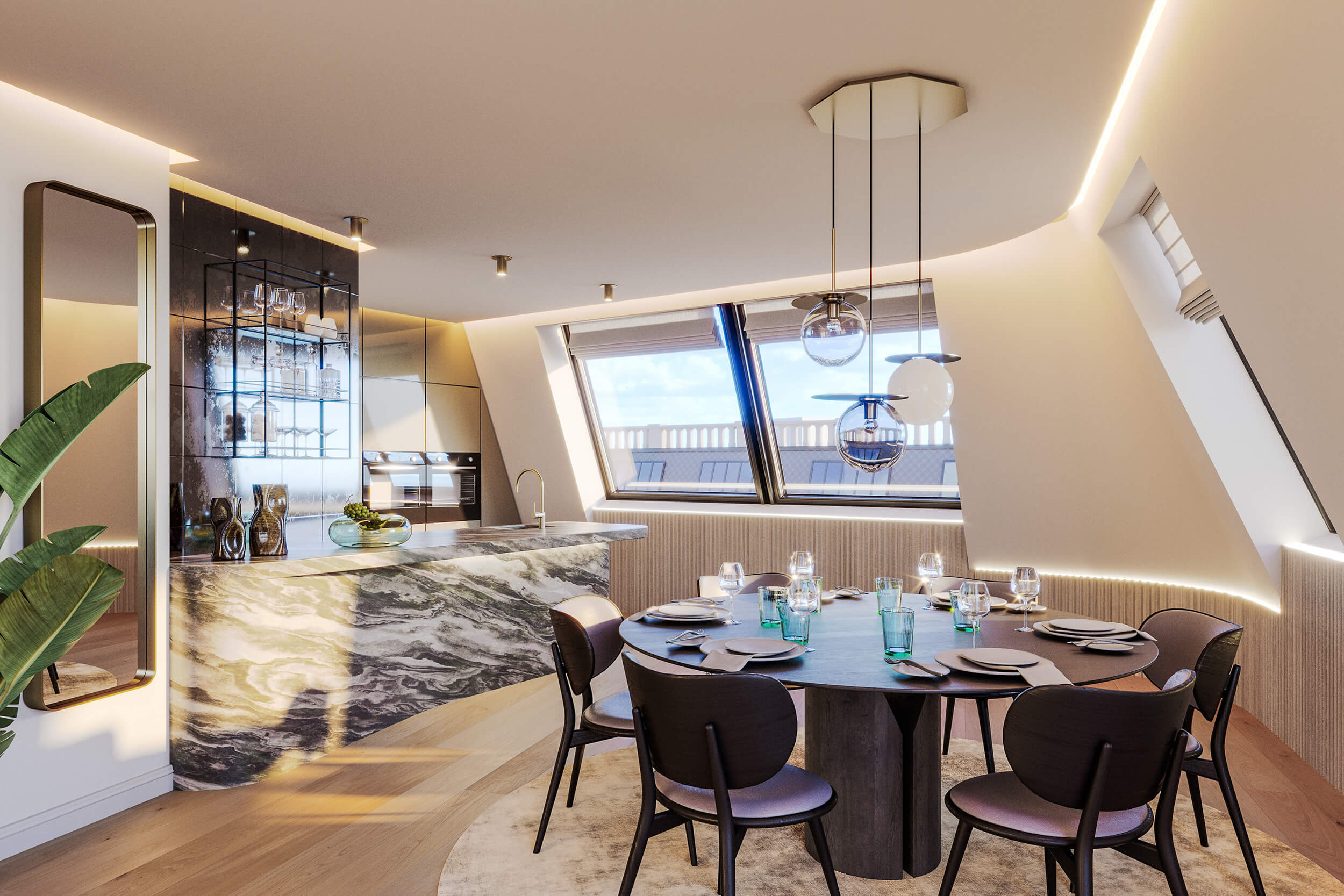 In den raffiniert geplanten Wohnküchen & Dining Areas wird Ihr Geschmacksinn auf eine Reise um die Welt geschickt. Die Küche als Ort der Begegnung und Herzstück jedes Penthouses steht dabei im Zentrum der Raumplanung - von dem edlen Weinkühler bis zur Back Kitchen wurde dabei an alles gedacht.